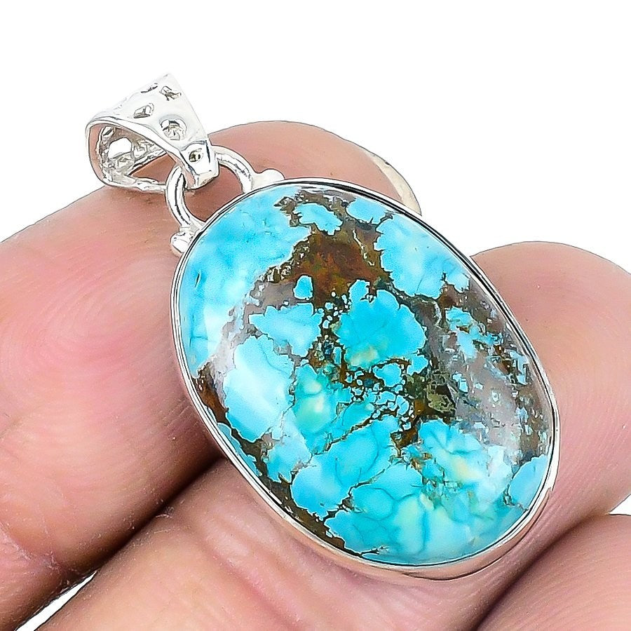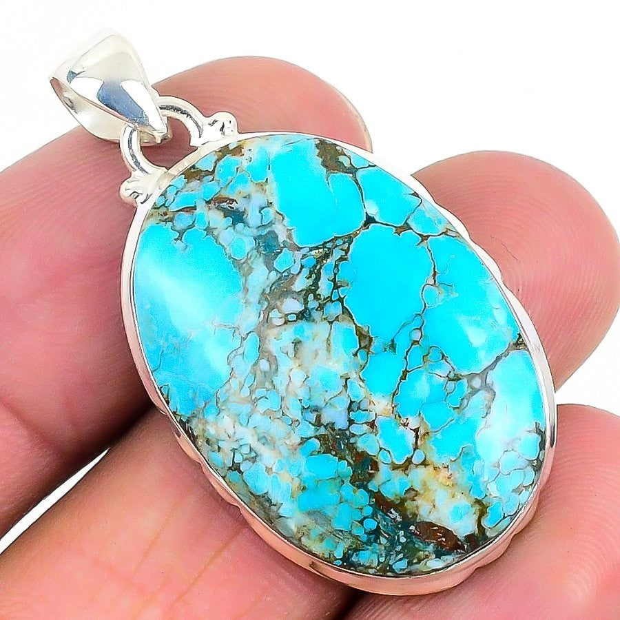 Tibetan Turquoise Stone Solid Sterling Silver Wife Throat Chakra Unique Pendant