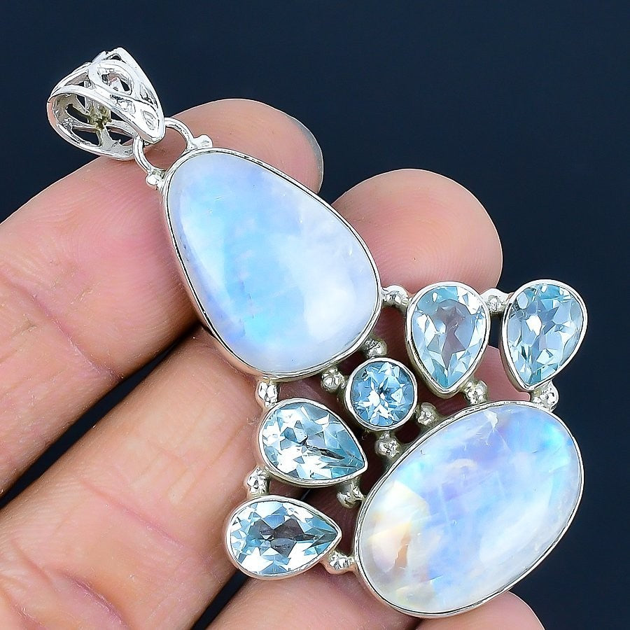 Daughters Day Deal Rainbow Moonstone Stone 925 Sterling Silver Artisan Pendant