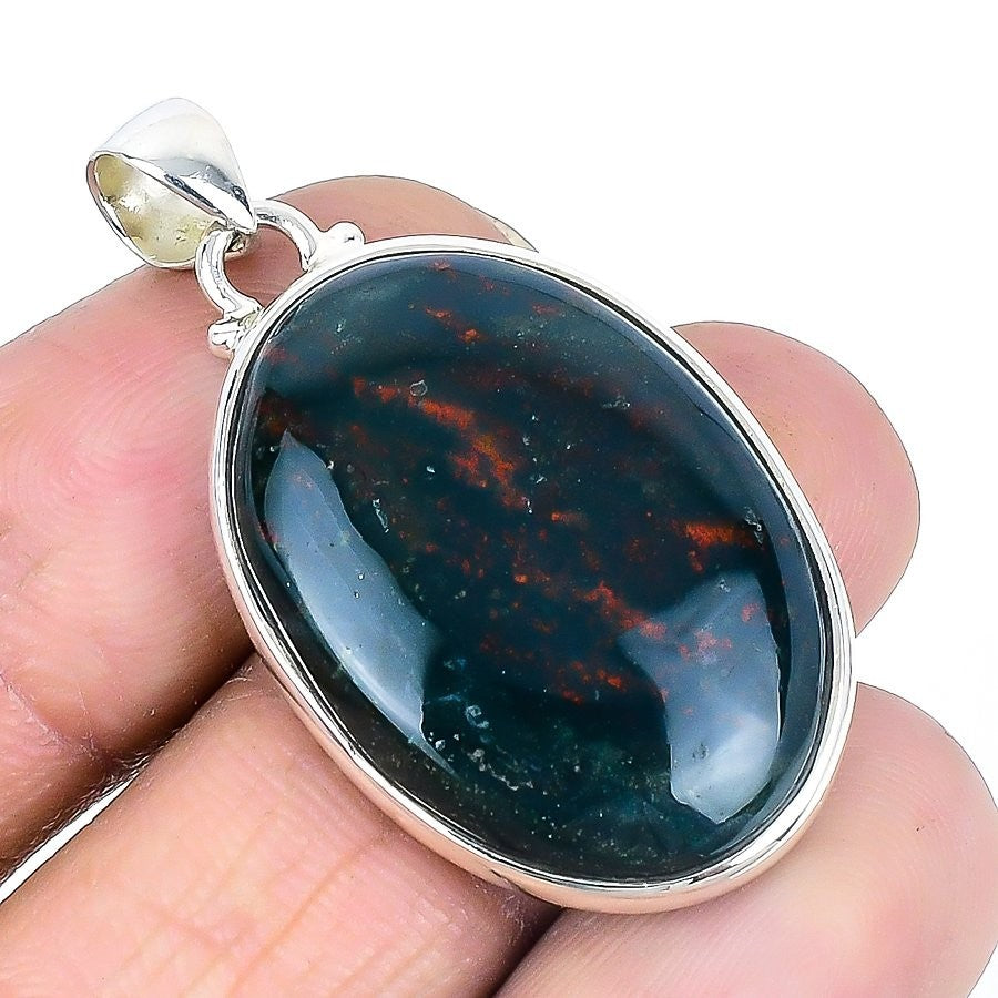 Natural Bloodstone Root Chakra Daughters Day Wife Boho Pendant 925Ā SolidĀ Silver