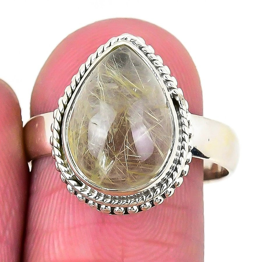 Daughters Day Deal Golden Rutile Stone 925 Silver Engagement Cluster Sister Ring