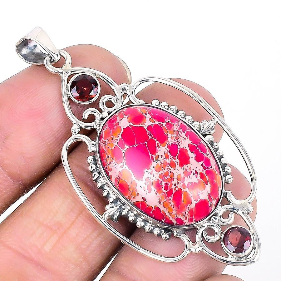 Daughters Day Deal Red Sea Sediment Jasper Gemstone Sterling Silver Wife Pendant
