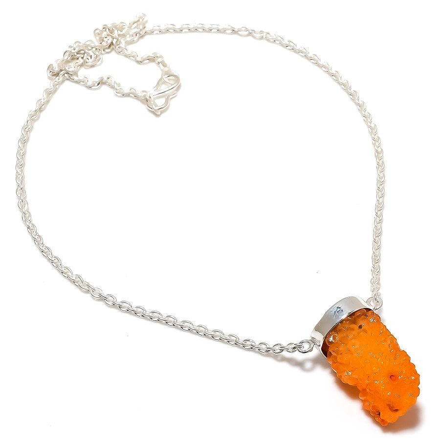 Natural Orange Druzy 925 Silver Engagement Ethnic New Chain Daughter Necklace