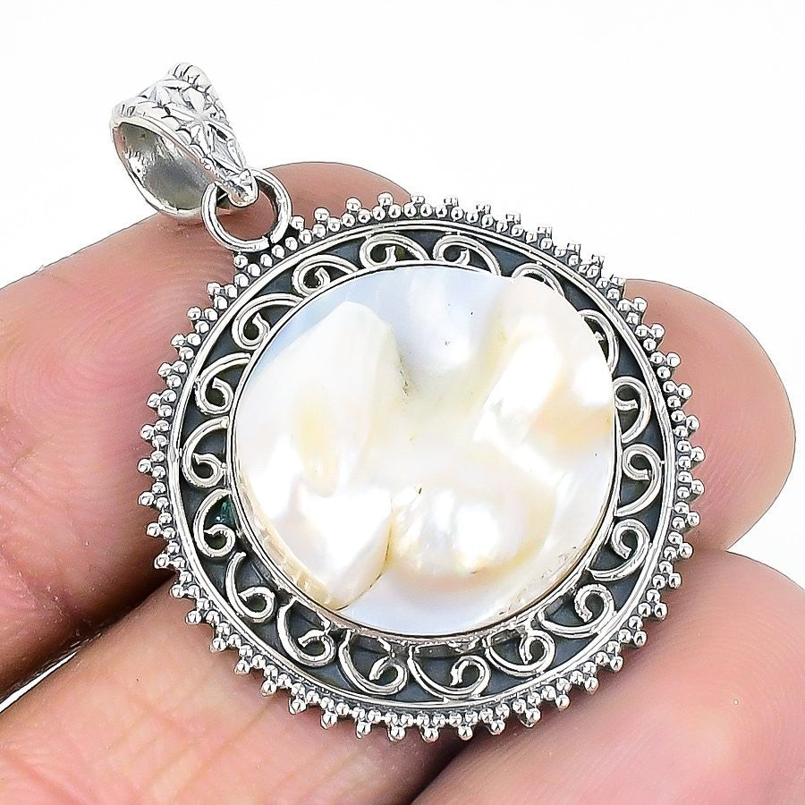 Biwa Pearl Stone Handmade Ethnic Wedding Trendy Pendant Jewelry Sterling Silver