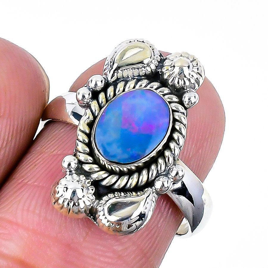 Natural Australian Opal 925 Silver Engagement Statement Ring Jewelry Size 7.5