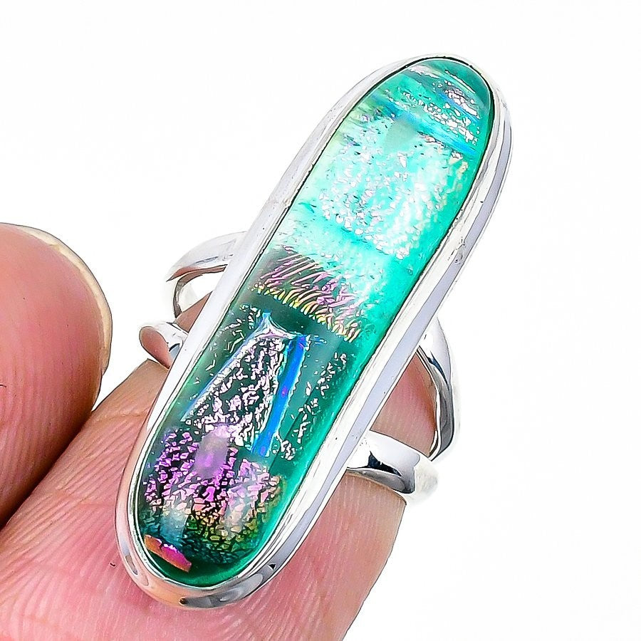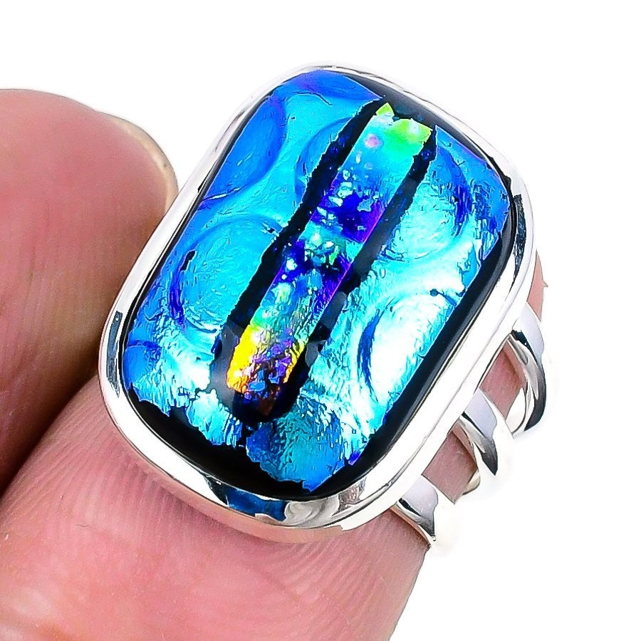 Natural Mexican Dichoric Glass Sterling Silver Wedding Statement Engagement Ring