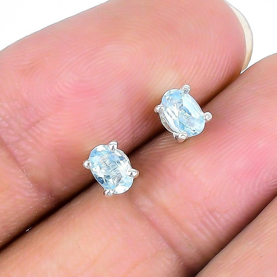 Natural Aqua Topaz New Stud Post November Birth Earrings Jewelry Sterling Silver