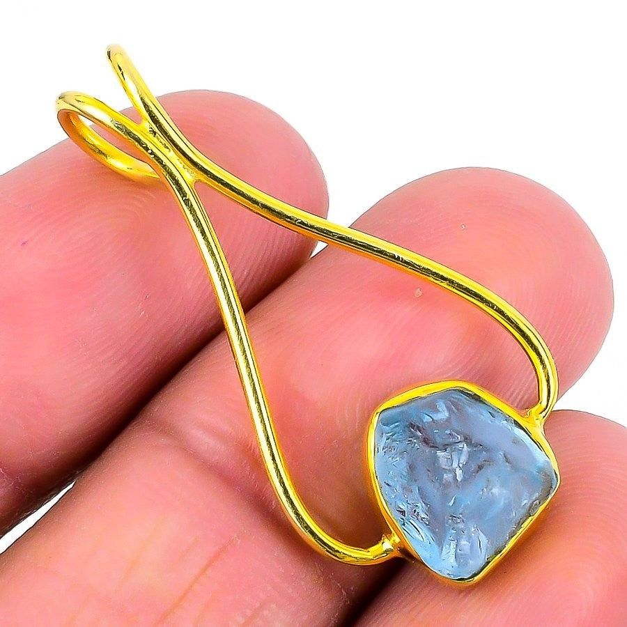 Aquamarine Stone Sterling Silver Gold Vermeil Daughters Day Unique Boho Pendant