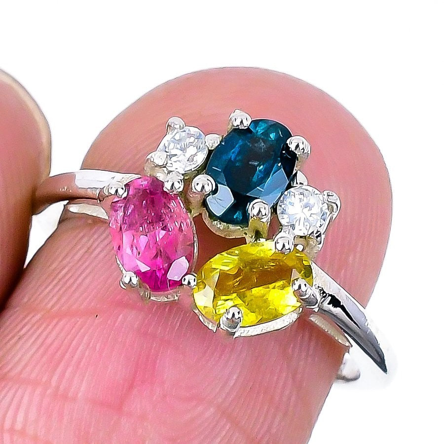 Multi Tourmaline Gemstone 925Ā SolidĀ Silver Statement Wedding Ring Jewelry Size 7