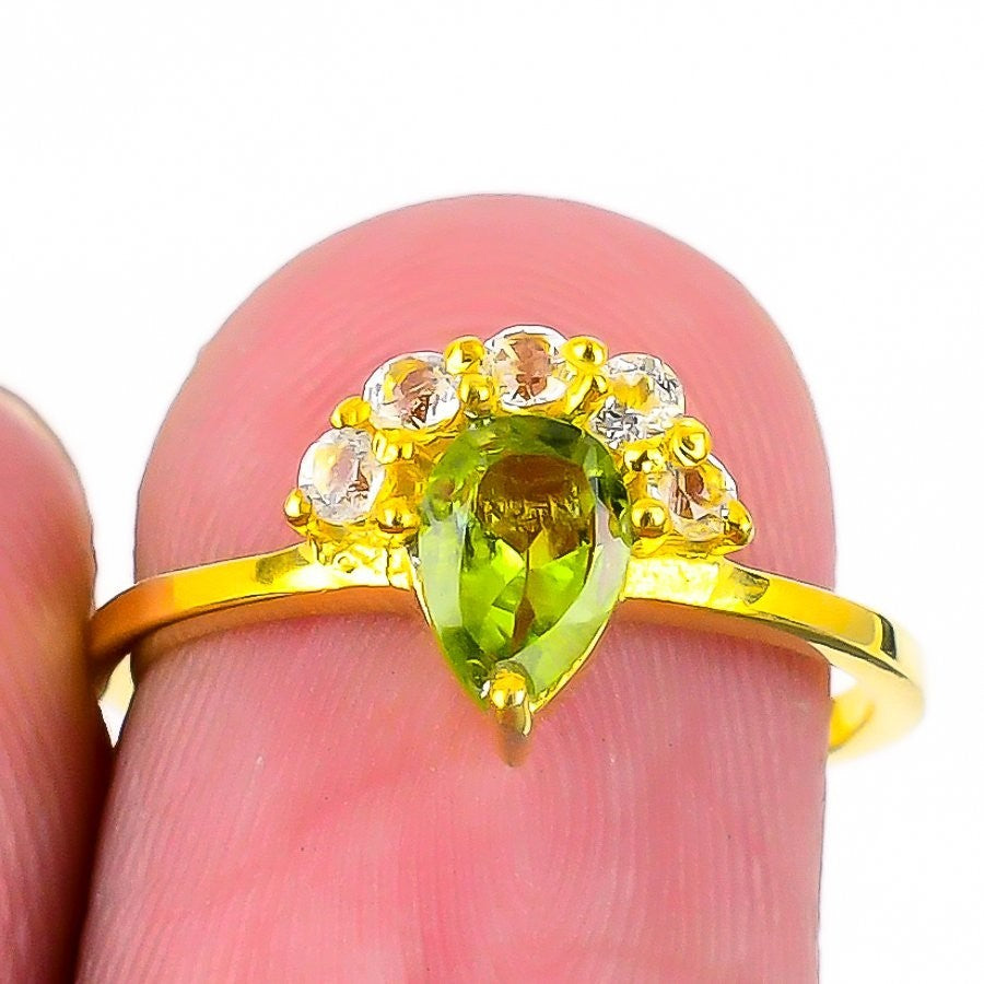 Peridot Stone Sterling Silver Gold Vermeil August Statement Ring Jewelry Size 7