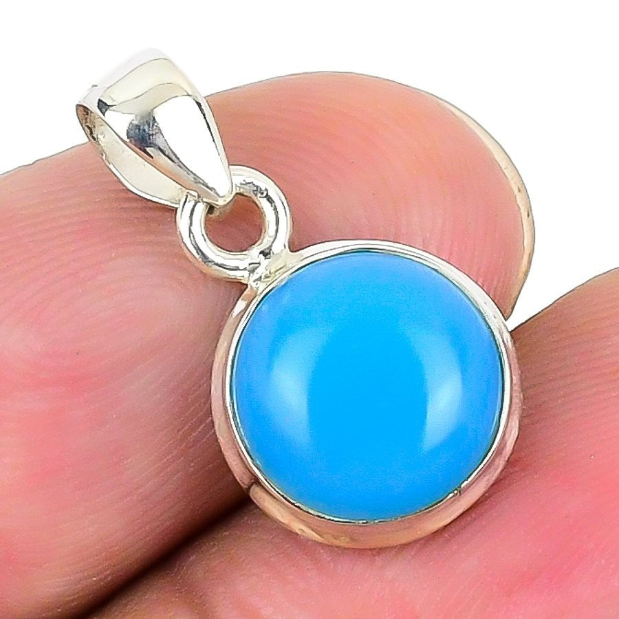 Aqua Chalcedony Stone Channel Set Birthday Wife Pendant Jewelry Sterling Silver