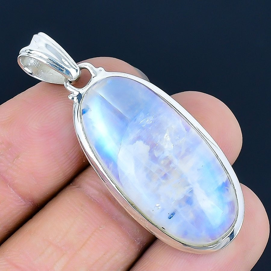 Crown Chakra Rainbow Moonstone Gemstone Solid Sterling Silver Elegant Pendant