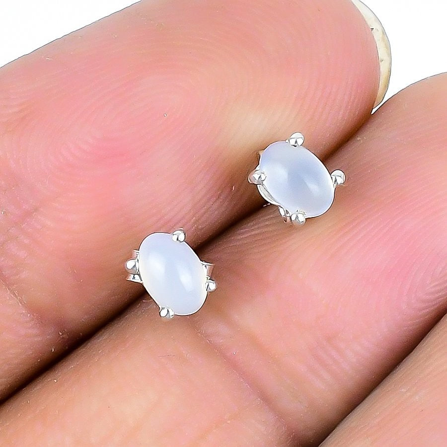 Rainbow Moonstone Stone Stud Engagement Earrings Jewelry Solid Sterling Silver