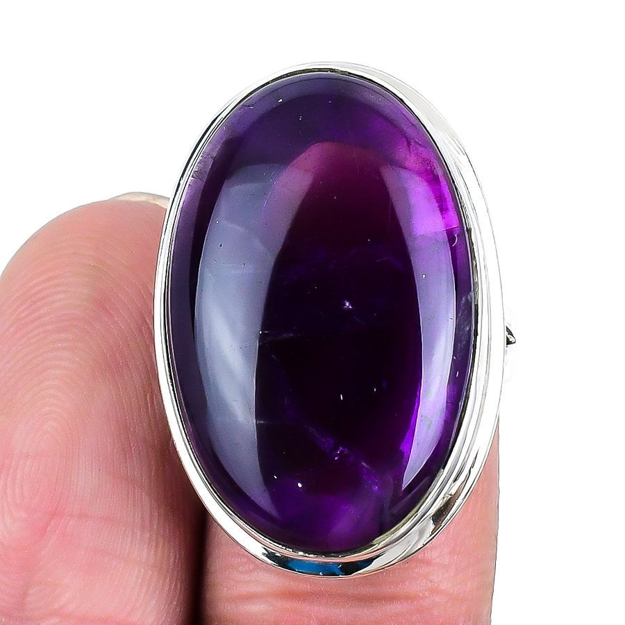 Sage Amethyst Gemstone Solid Sterling Silver Boho Statement Mother Ring Size 5.5