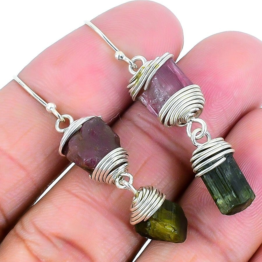 Natural Tourmaline rough 925 Sterling Silver Hook Dangling Wife Earrings Jewelry