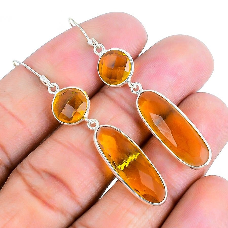 Citrine Stone Solid Silver Handmade Drop Dangle Hook Daughter Earrings Jewelry