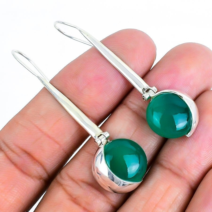Green Onyx Stone Sterling Silver Anniversary Sister Drop Hook Birthday Earrings