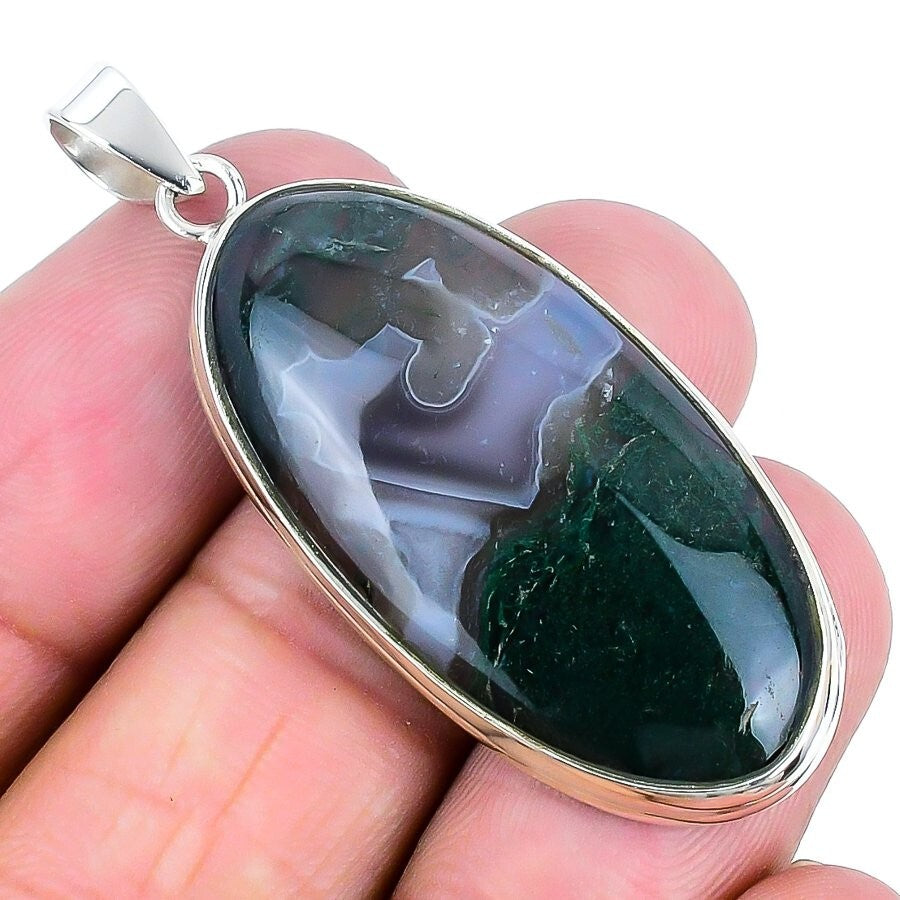 Moss agate Stone 925 Sterling Silver Birthday Ethnic Anniversary Pendant Jewelry