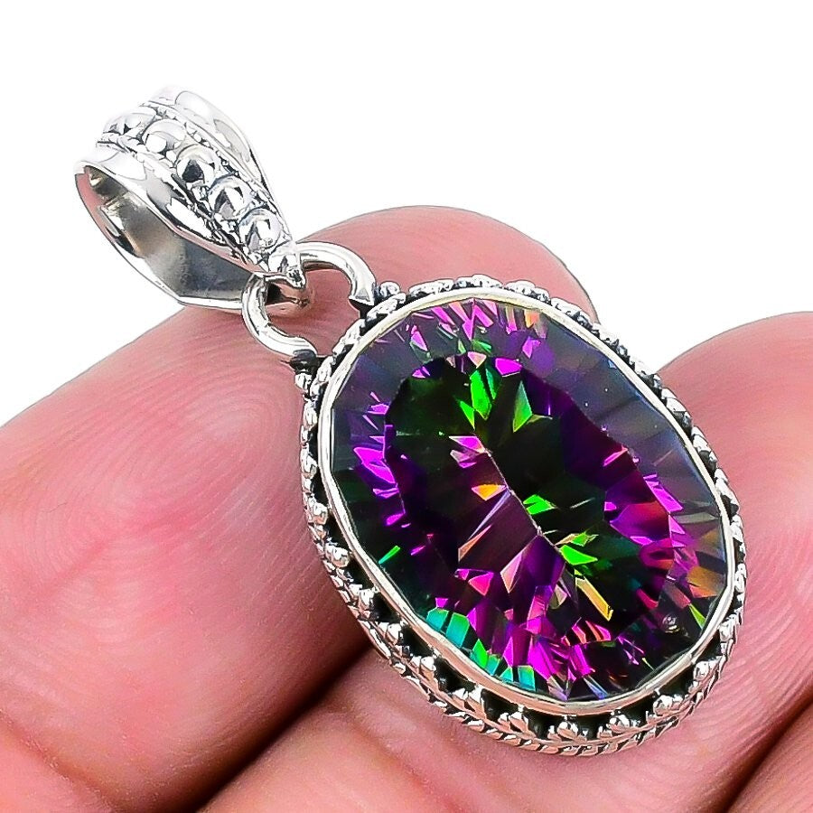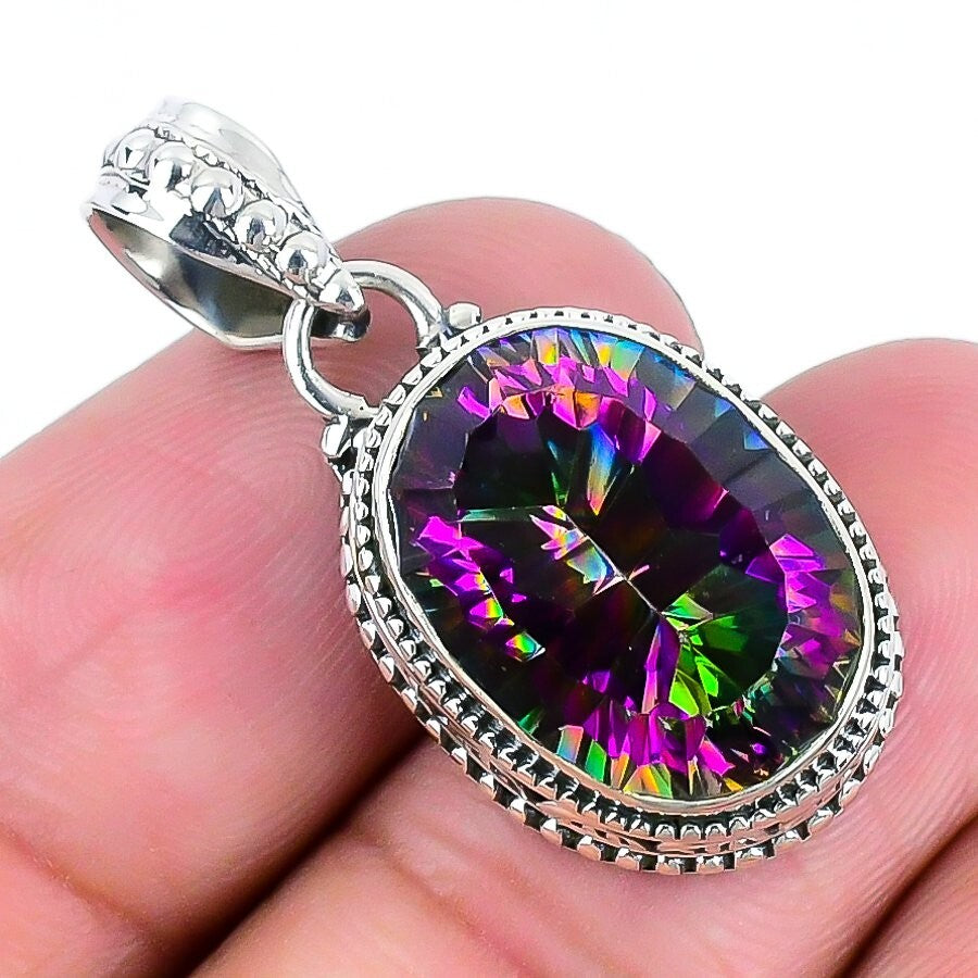 Mystic Rainbow Topaz Stone 925Ā SolidĀ Silver Wedding Daughter New Pendant Jewelry