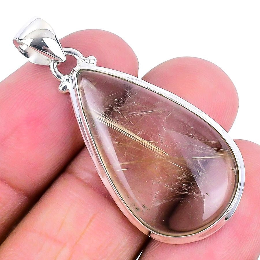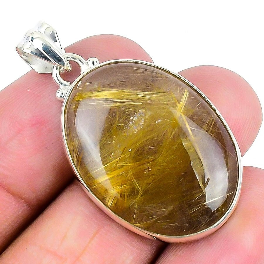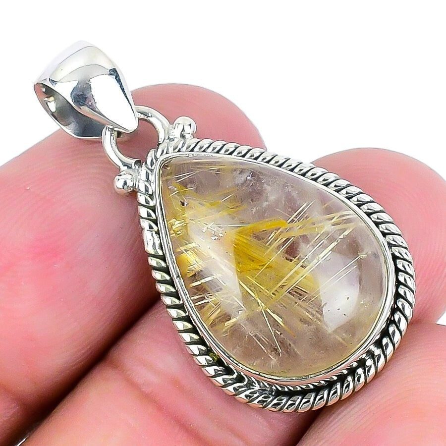Golden Rutile Gemstone Sterling Silver Engagement Birthday Mother Ethnic Pendant