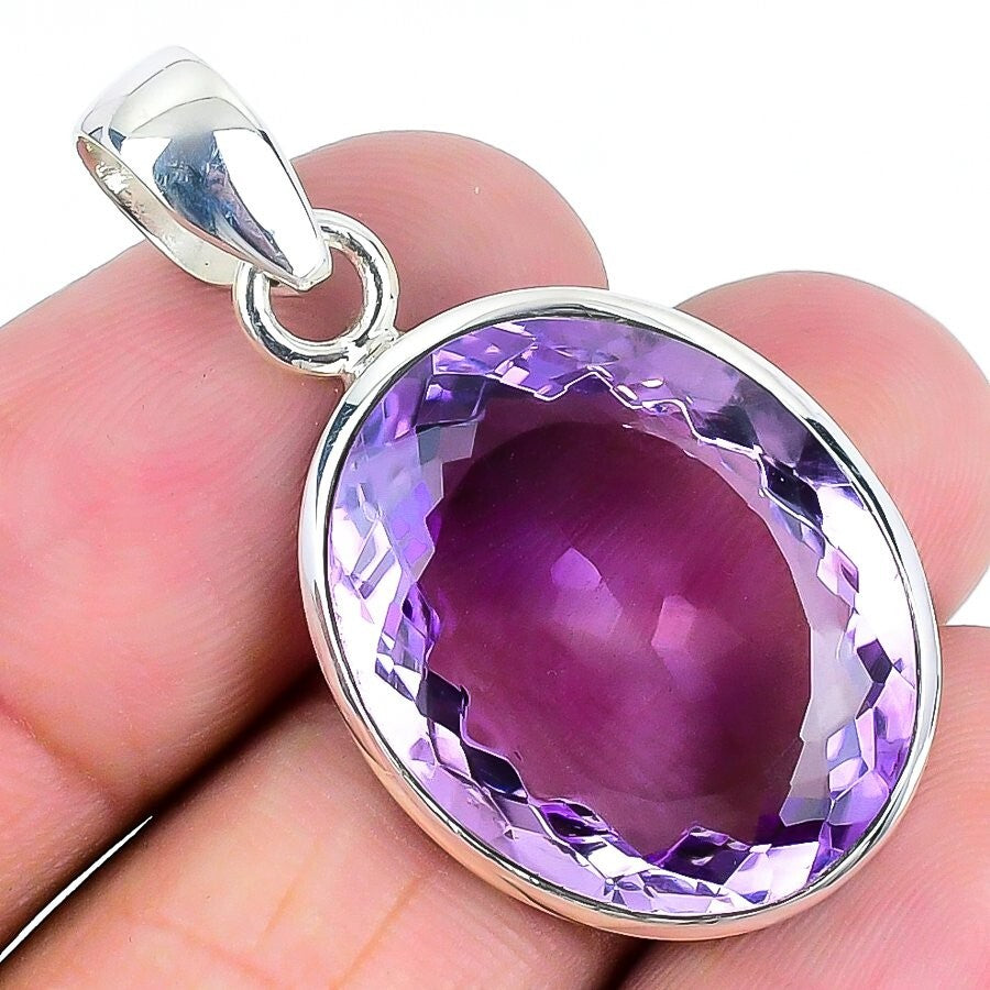 Amethyst Gemstone 925Ā SolidĀ Silver February Birth Daughter Engagement Pendant