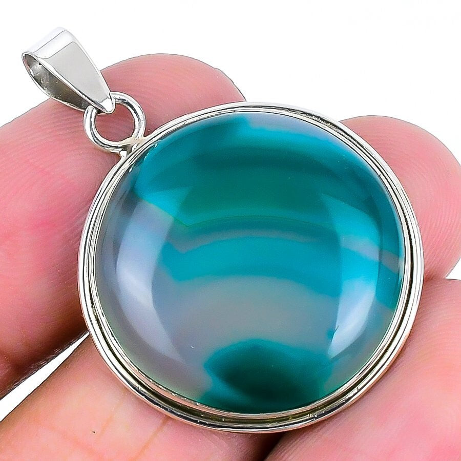 Natural Green Lace Agate Solid Sterling Silver New Anniversary Pendant Jewelry