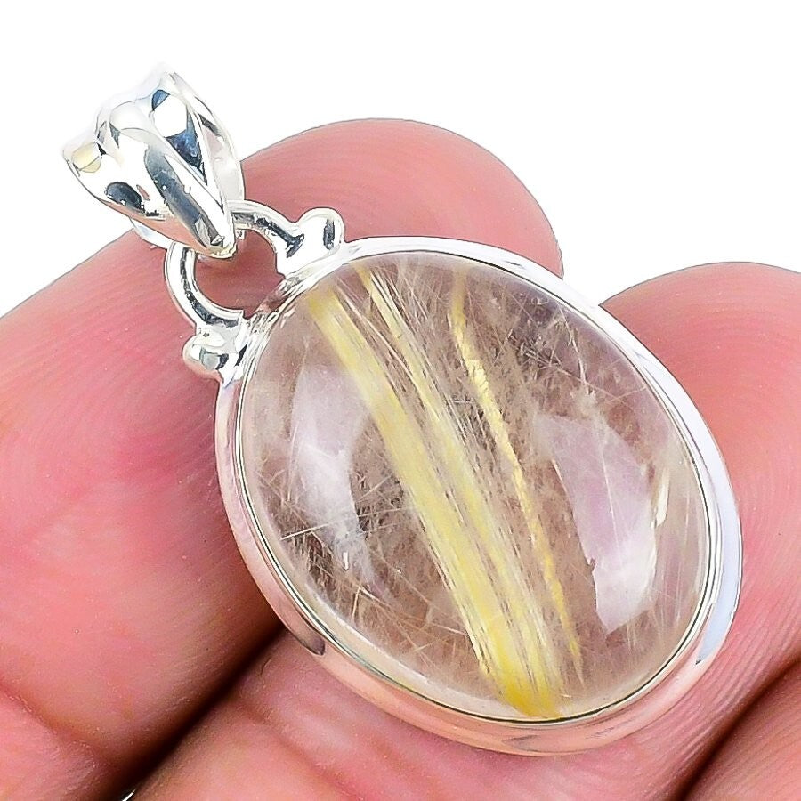 Golden Rutile Gemstone Solid Sterling Silver Wife Trendy Unique Elegant Pendant