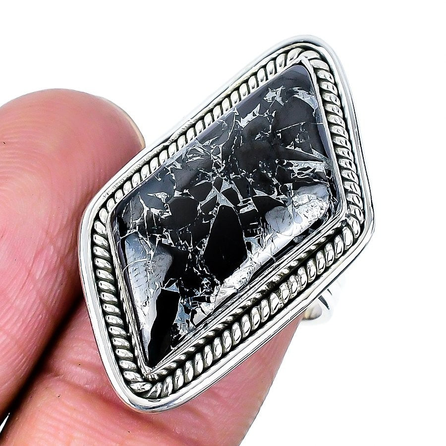 Natural Copper Shungite 925 Sterling Silver Daughters Day Statement Ring US 8