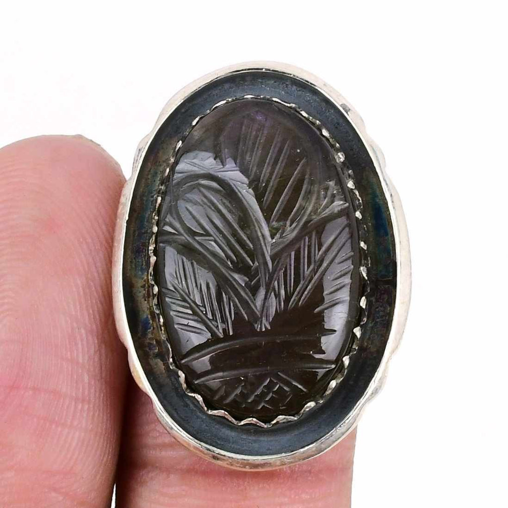 Natural Purple Labradorite Carving 925Ā SolidĀ Silver Cluster Ring Jewelry Size 10