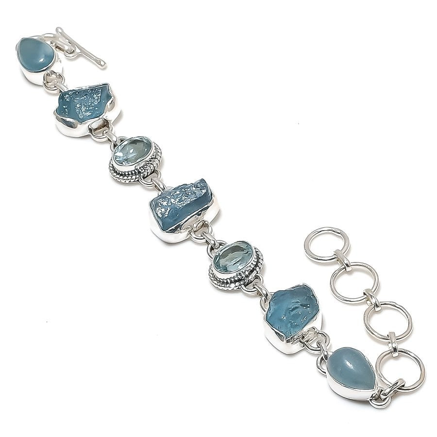 Aquamarine Druzy Stone Wife Chain Handcrafted Bracelet Jewelry Sterling Silver
