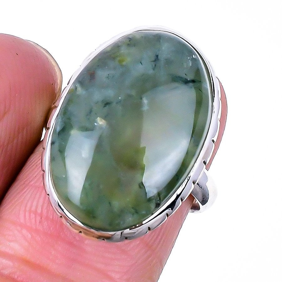 Natural Moss Prehnite Sterling Silver Statement Best Daughters Gift Ring US 6.5