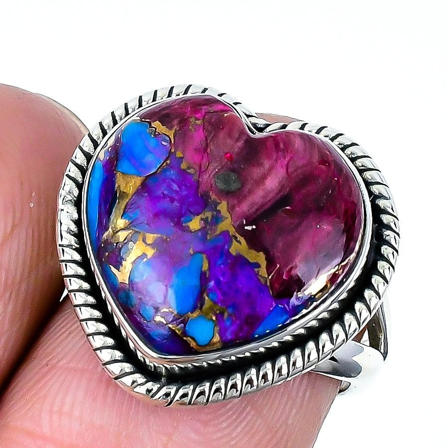 Natural Pink Spiny Oyster Heart 925Ā SolidĀ Silver Daughter Statement Ring US 6