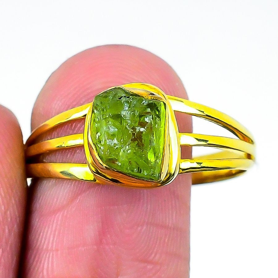 Natural Peridot Rough 925Ā SolidĀ Silver Promise Band New Ring Jewelry Size 12.5