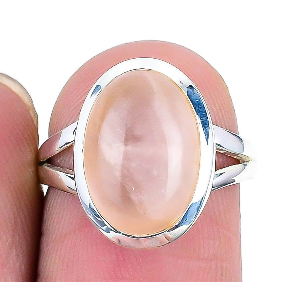 Heart Chakra Rose Quartz Gemstone Solid Silver Statement Artisan Wife Ring US 6