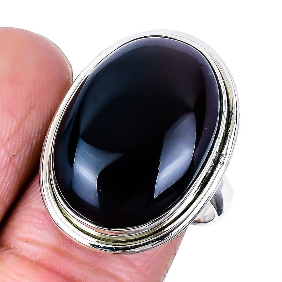 Black Onyx Gemstone Sterling Silver Sister Engagement Unique Statement Ring US 8
