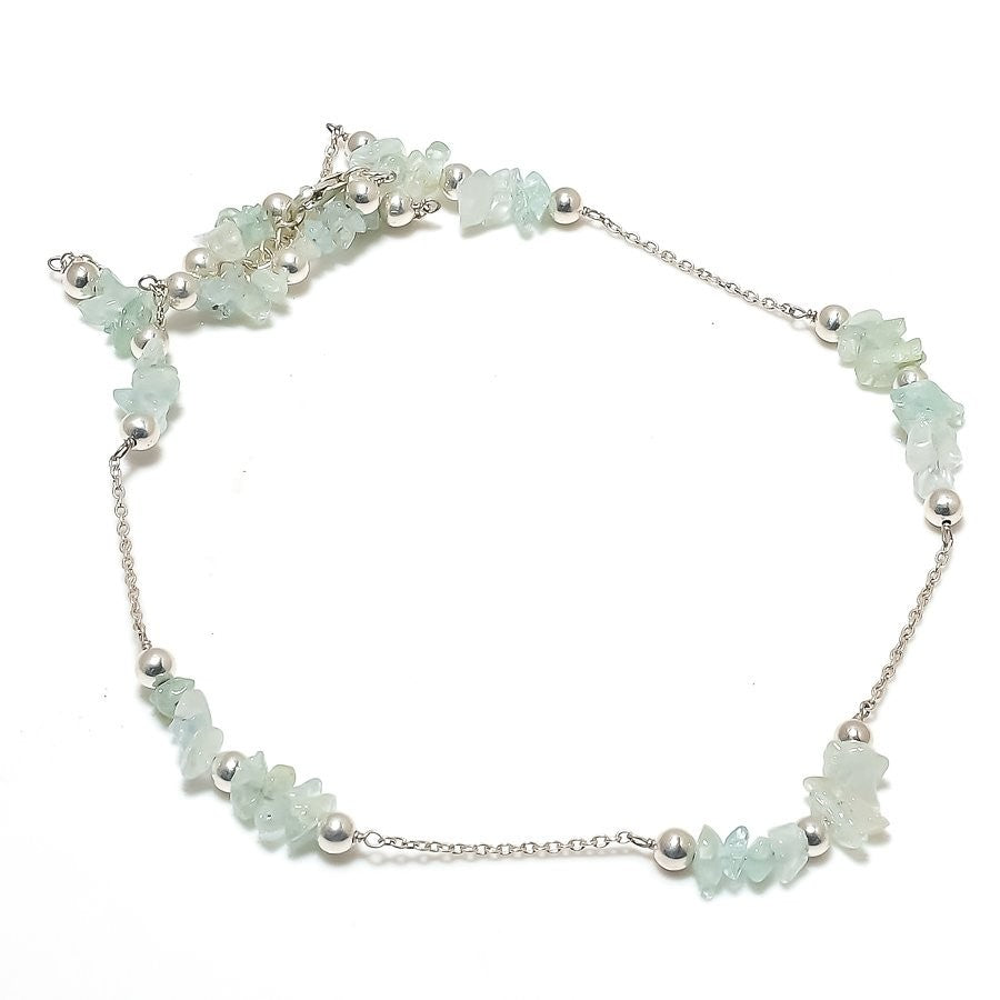 Aquamarine Druzy Gemstone Sterling Silver Anniversary Chain Handcrafted Necklace