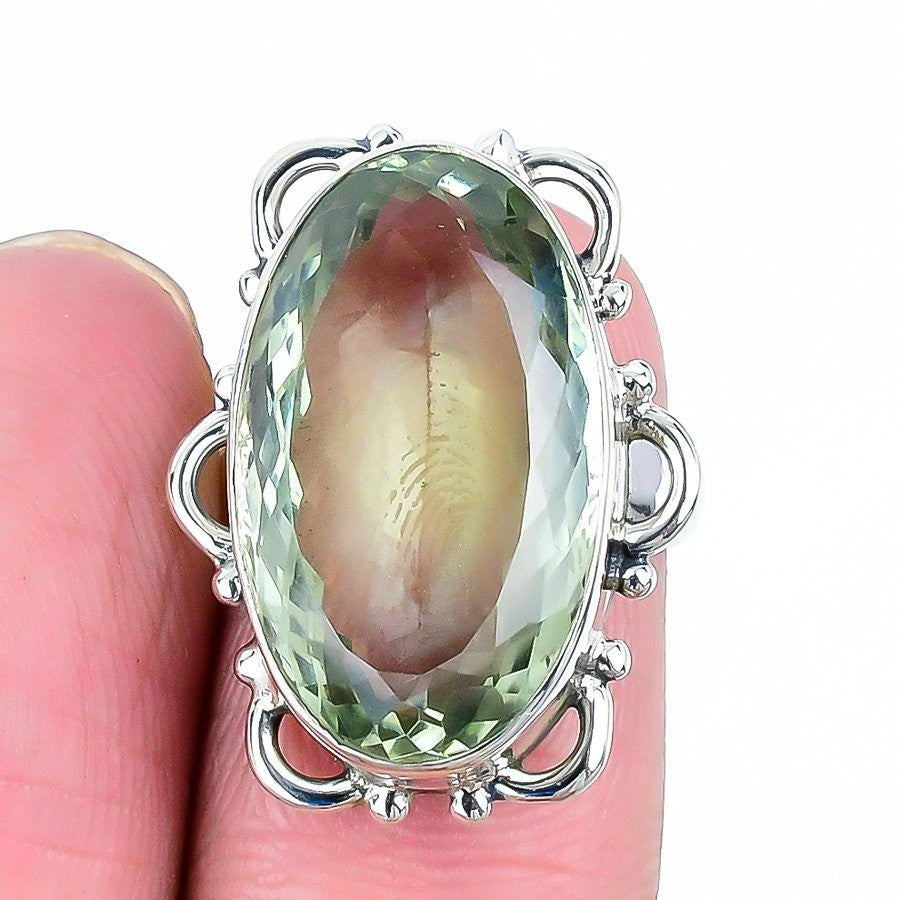 Tourmaline Gemstone Cluster Artisan Anniversary Ring Jewelry Size 8 Solid Silver