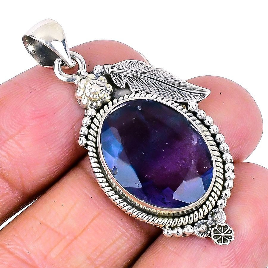 Fluorite faceted Gemstone Sterling Silver Daughter Boho Wedding Pendant Jewelry