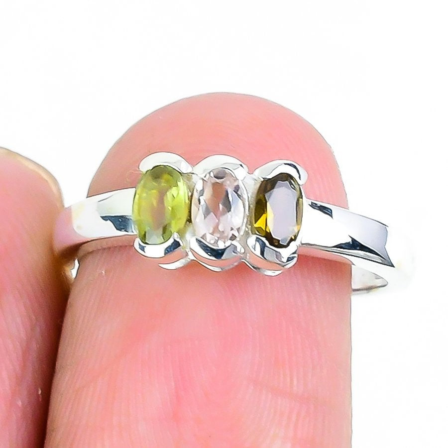 October Natural Green Tourmaline Faceted 925 Silver Cluster Sister Ring Size 6