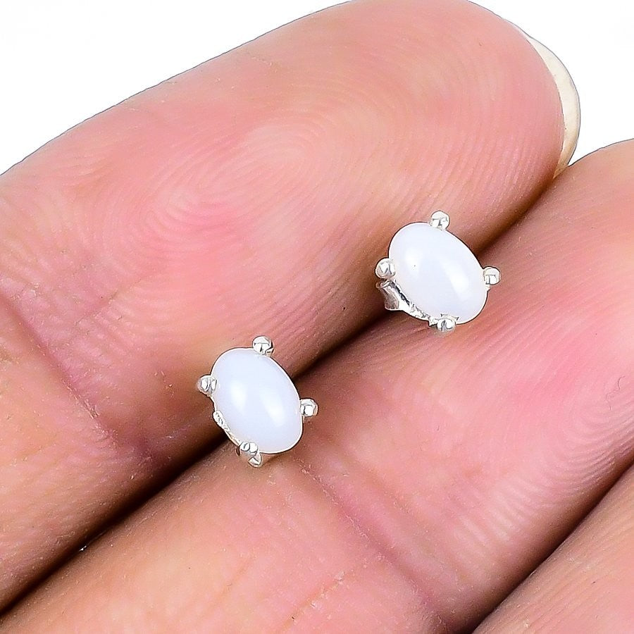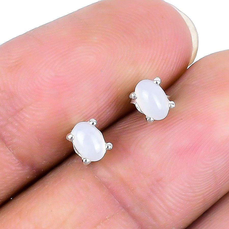 Selenite Gemstone 925 Sterling Silver Daughter Stud Post Boho Earrings Jewelry