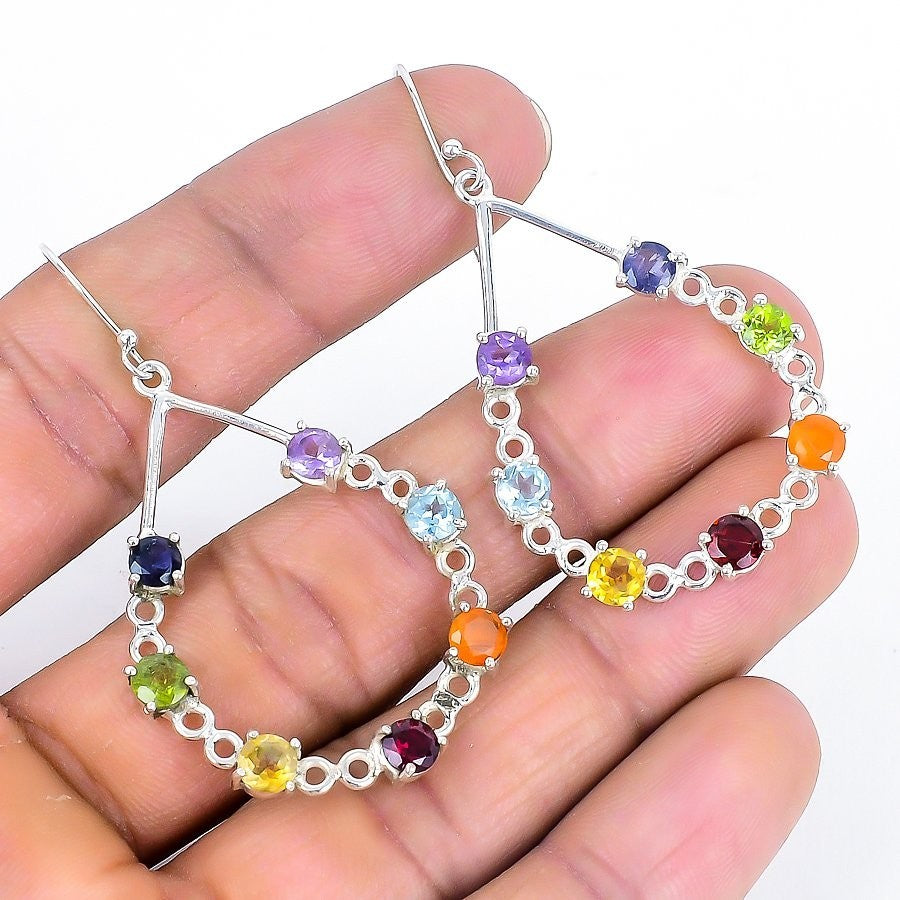 Daughters Day Deal 7 Chakra Stone 925 Solid Silver Dangle Hook Earrings Jewelry
