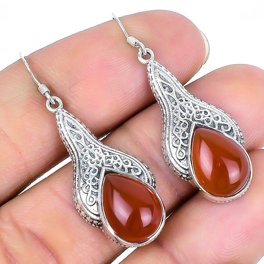 Carnelian Stone Sterling Silver Engagement Dangle Drop Mother Elegant Earrings