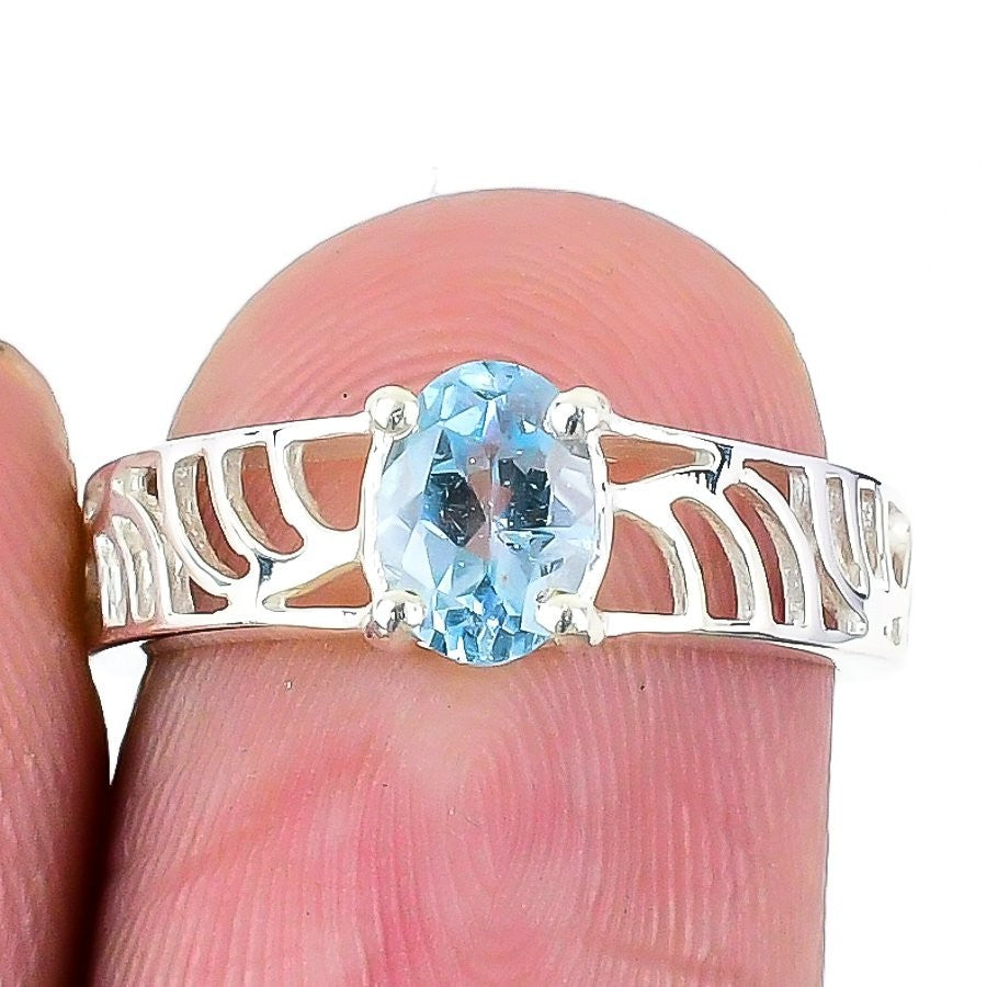 Swiss Blue Topaz Gemstone Solid Silver Sister Trendy New Statement Ring US 6