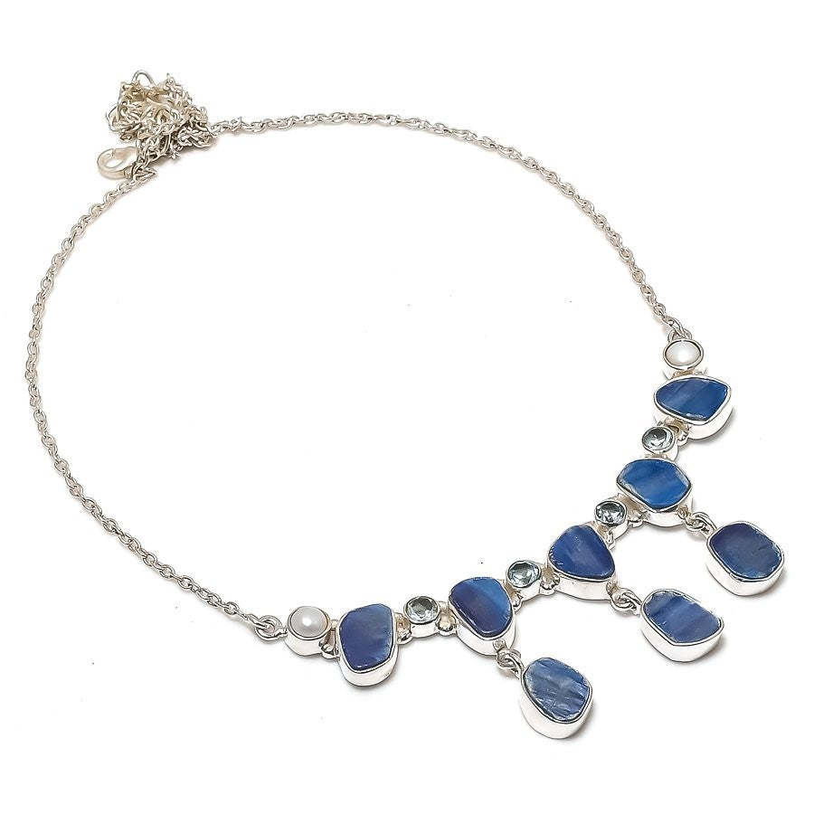 Natural Blue Kyanite Druzy 925 Sterling Silver Chain Sister New Necklace Jewelry