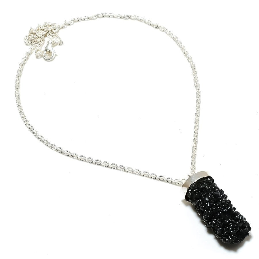 Black Druzy Stone 925 Sterling Silver Handmade Chain Daughters Day Boho Necklace