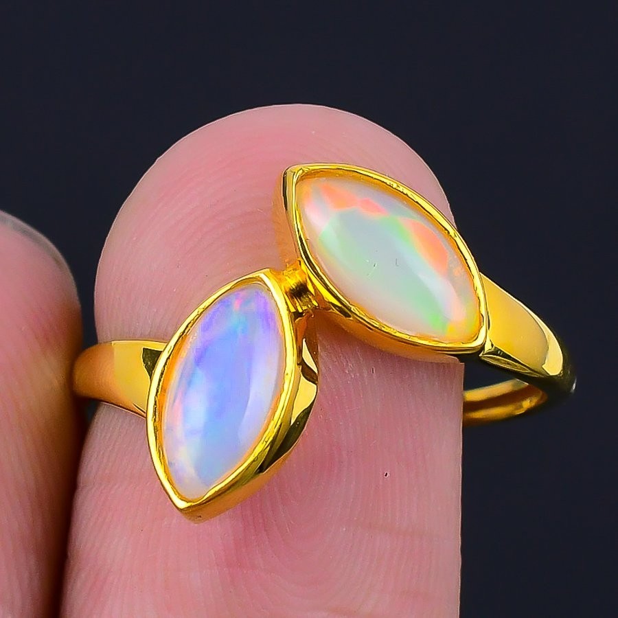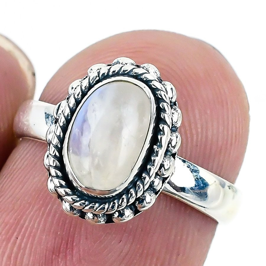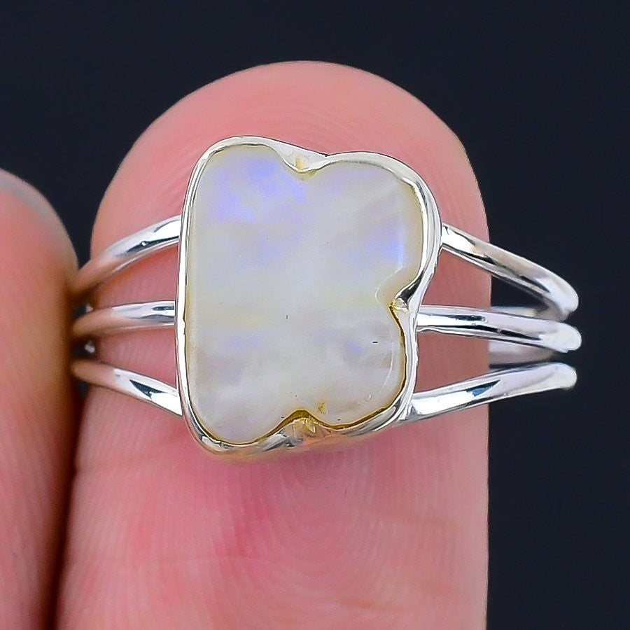 Rainbow Moonstone Gemstone Sterling Silver Daughters Day Statement Ring Size 8.5