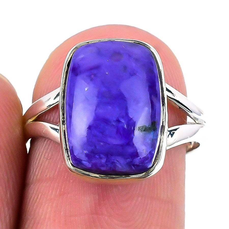 Russian Charoite Gemstone Art Deco Statement Ring Size 7.5 925 Sterling Silver