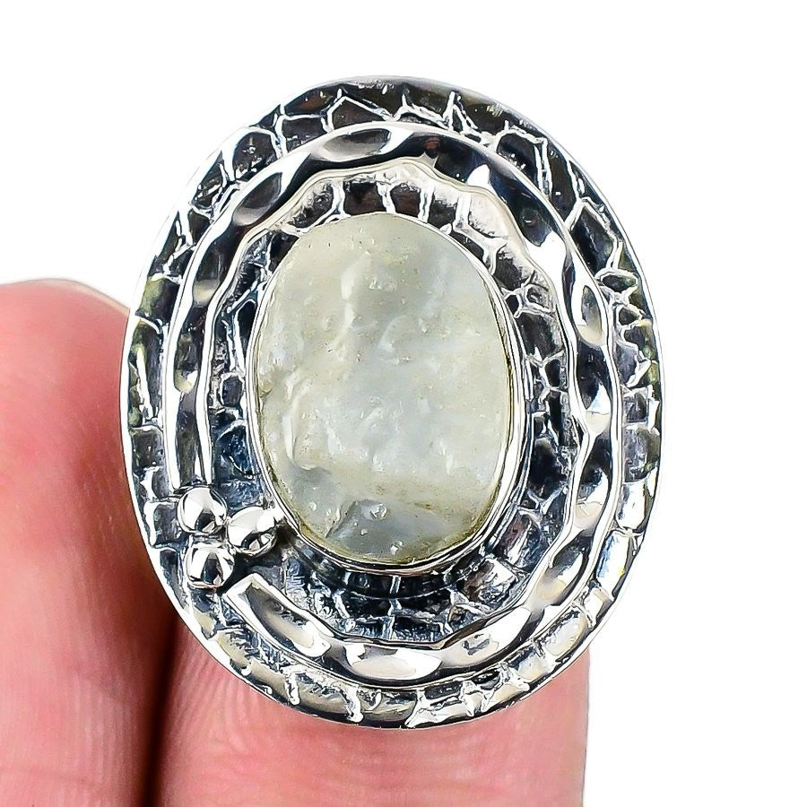 Prehnite Gemstone Engagement Trendy Statement Daughter Ring 925 Sterling Silver