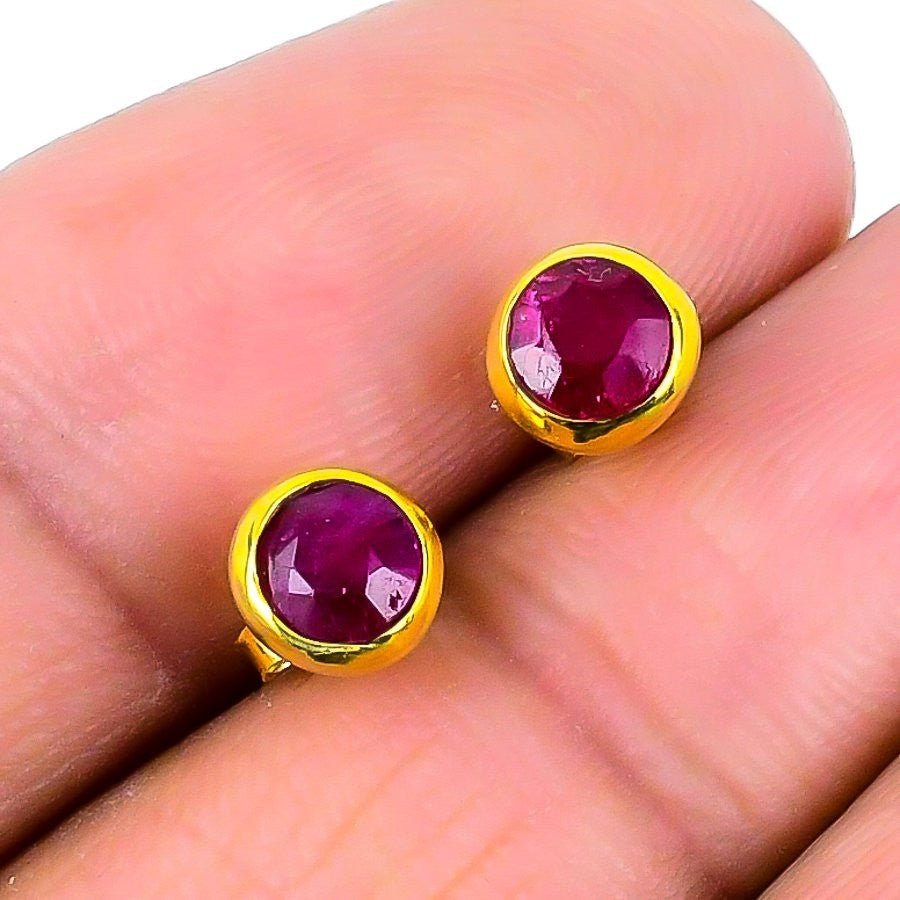 Natural Kashmir Red Ruby Solid Silver Birthday Dangling Wedding Earrings Jewelry