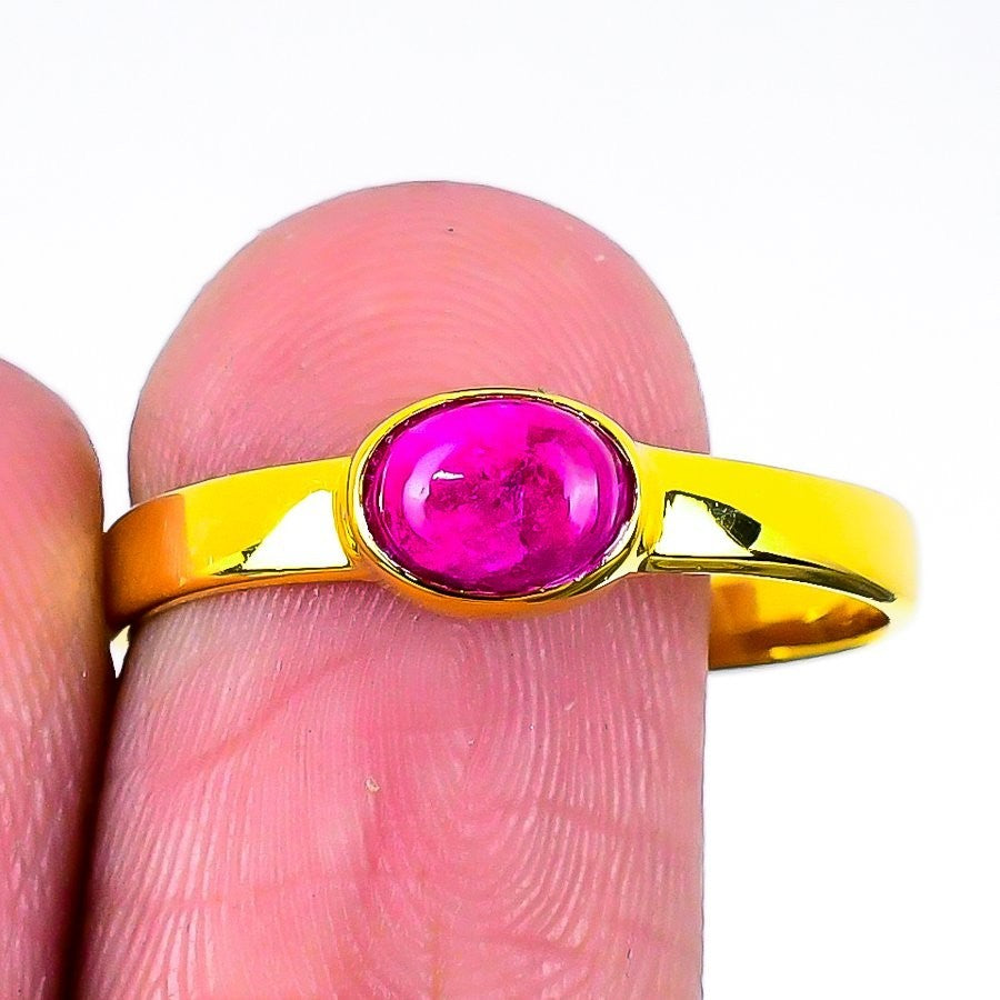 Pink Tourmaline Stone Solid Sterling Silver Statement Daughter Gift Ring US 8