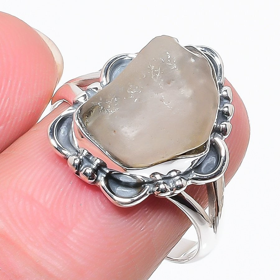 Selenite Stone Sterling Silver Unique Statement Handmade Crown Chakra Ring US 9